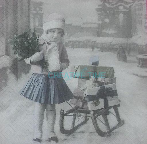 Servítka vintage dievča a sánkySkladom 6 ks0,40 EUR/ ks